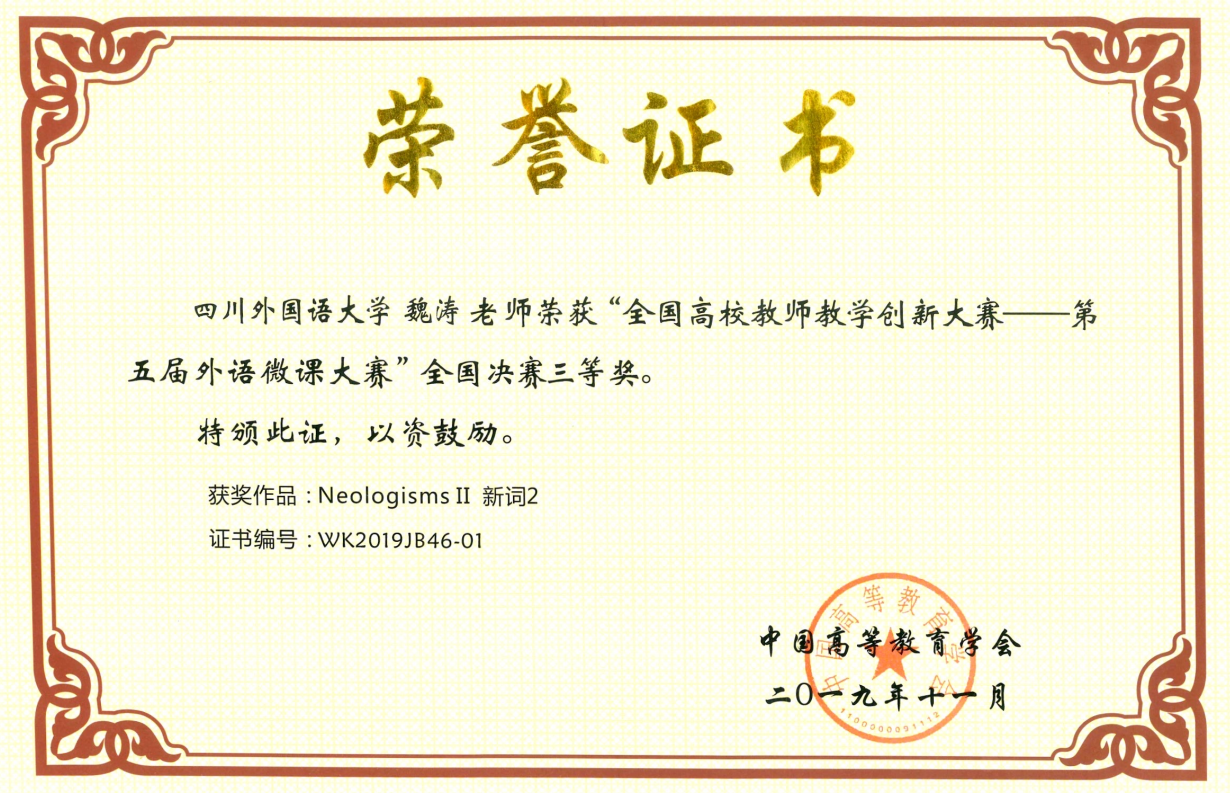 全国高校教师教学创新大赛——第五届外语微课大赛 |