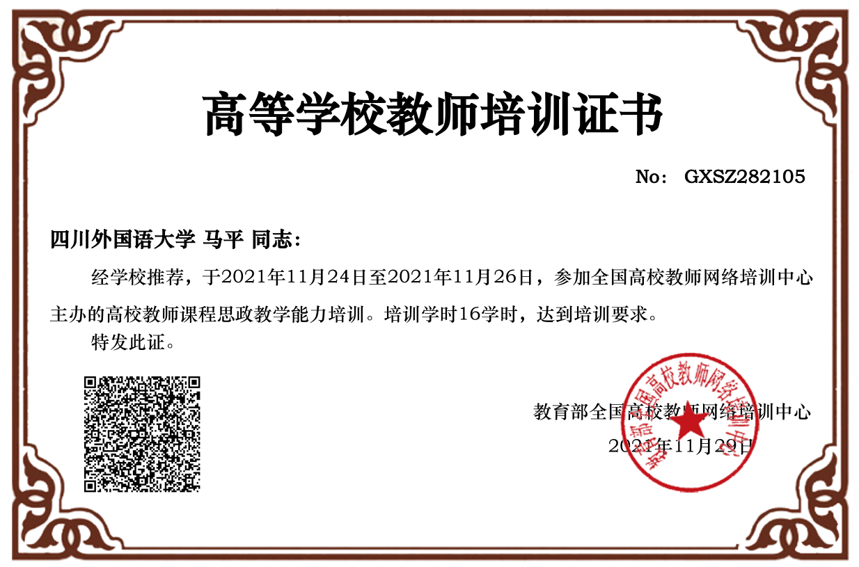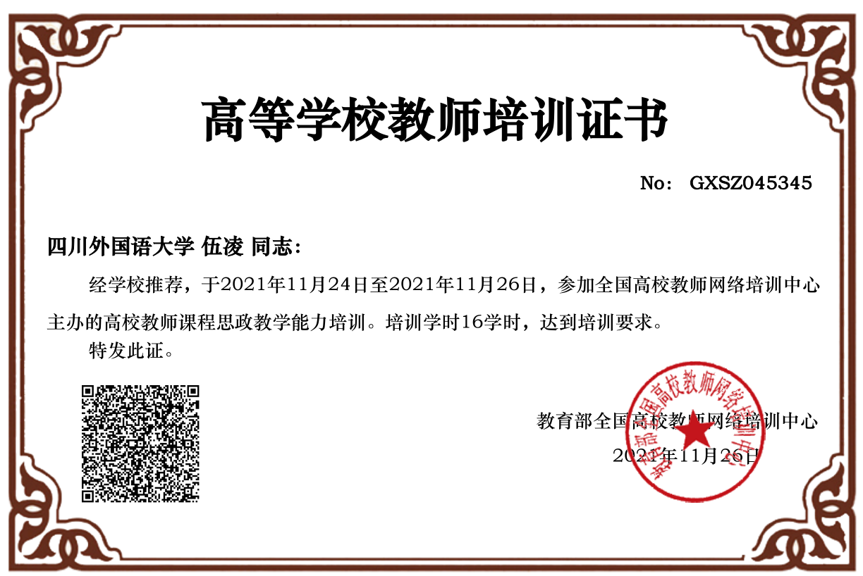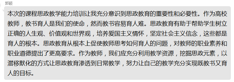 2、全院教师参加了教育部网络培训中心组织的“高校教师课程思政教学能力培训”并获得相关证书。安排部分教研室主任参加了“三进”教学、课程思政和《理解当代中国》系列教材相关培训,并由马平、赵奂、伍凌等教师对全体教研室主任和部分教师就如何进行“三进”内容教学、如何在专业课程中融入思政元素以及如何有效使用《理解当代中国》教材进行了课堂教学展示活动,提高了全院教师对课程思政的直观理解。
