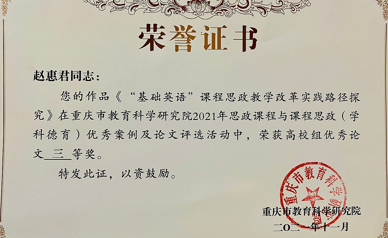 4、推动以“课程思政”为主题的教研和科研,鼓励教师申报相关教改教研项目,撰写教学案例,发表学术论文。