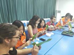 这两个环节过后,大家开始品尝我们事先准备好的粽子,同时更有汉服小姐姐在场跳舞助兴。现场欢声笑语,大家通过相互交流增进了友谊,加深了对中华文化的理解。温暖的RED ,温暖微光社,温暖的端午节,温暖的异乡。有我们与外国朋友一起欢度端午节,异乡的天空不再孤单!