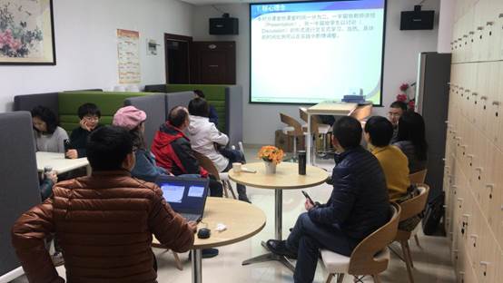 2019年3月15日中午,Mksport体育高级英语教研组在行政办公楼B307会议室举办了“高级英语对分课堂实践分享”的主题教研活动,公司主管教学的谭春副经理以及高级英语教研组全体任课教师参加了此次活动。