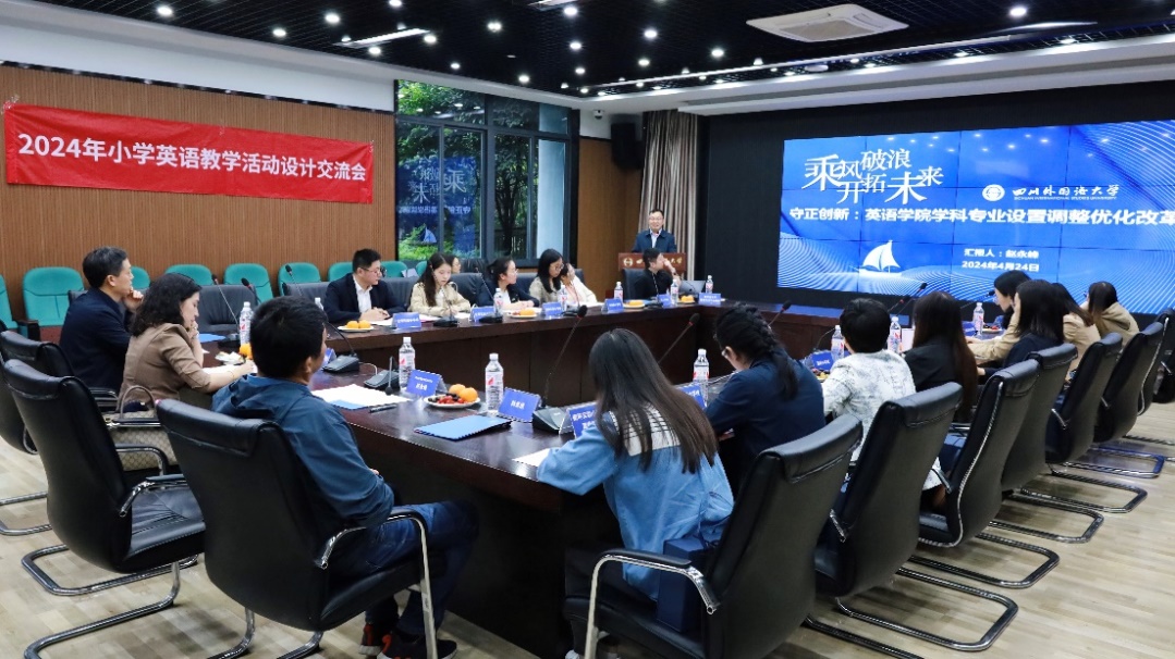 继3月29日举办“成渝地区双城经济圈政企校联动一体化培养高端英语人才研讨会”之后,川外Mksport体育乘势巩固战果,举办了“党建引领,助力中小学英语教学”为主题的“2024年小学英语教学活动设计交流会”。4月24日,来自重庆市教育科学研究院的专家、川外Mksport体育的教师及博士生代表和重庆市中心城区的十余所小学英语学科负责人围绕“新课标”下小学英语老师如何提升教学效果进行了分享交流。