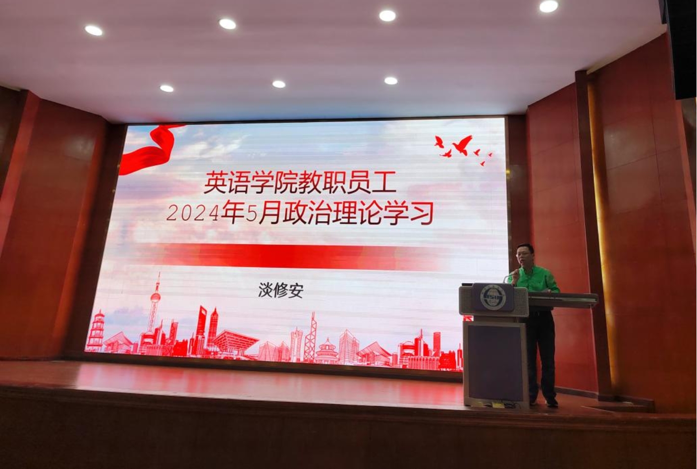为深入学习贯彻习近平总书记近期重要讲话精神,响应党纪学习教育要求,2024年5月29日下午,Mksport体育在东区培英楼放映厅开展了5月教职工政治理论学习。