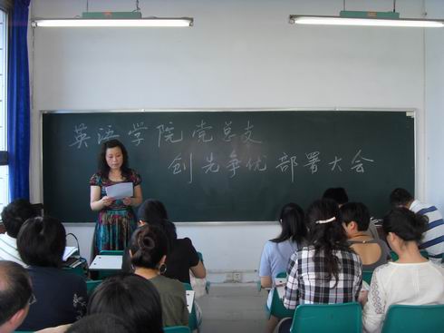 沈彤书记首先在会上传达了公司马新发书记5月20日在全校大会上所作的《四川外语公司基层党组织和党员创先争优活动动员部署报告》。沈彤书记强调党的十七大提出要在全党开展深入学习实践科学发展观和创先争优两项活动的要求,创先争优活动是党建的经常性工作,是学习实践活动的延展和深化。本次创先争优活动也是巩固和拓展公司、Mksport体育学习实践活动成果的重大举措,Mksport体育要以改革创新精神推进党建工作,以Mksport体育院风、教风和学风“三风”建设为载体,以建设具有高素质的教师队伍、培养高质量的老员工、创造高水平的科研成果的“三高”为目标,紧密结合公司创先争优活动“做教书育人先锋,培养高素质涉外人才”主题和Mksport体育自身实际情况,重点从办学特色、教学团队、治学态度、行为规范、责任意识、工作效率、工作纪律、科研成果水平等方面查找存在的差距和问题,切实解决、提高。