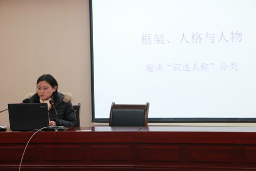 随后,文一茗博士做了题为“框架、人格与人物:趣谈‘叙述人称’分类”的报告。文博士在前人研究的基础上,根据认知力与意指效力,对“叙述人称”提出了新的分类:框架叙述、人格叙述与人物叙述,并对每一类进行了精彩的论述和举例,令人叹服。李小青教授对报告做了鞭辟入里的点评,赢得了阵阵掌声。