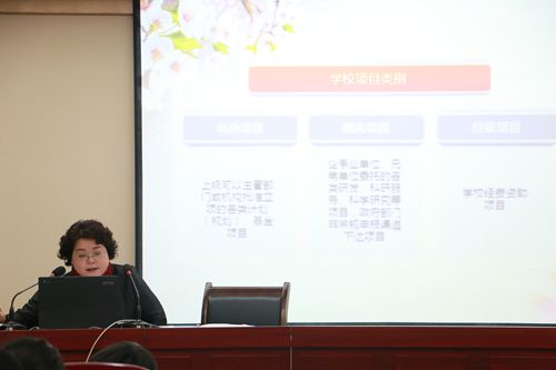 随后,李小青处长做了题为“科研项目申报和管理规定解读”的报告,从科研政策的高度,对各级各类科研项目的性质和要求进行了介绍,对项目申报、结题、经费管理和报销等方面的规定进行了权威解读,听众受益匪浅。