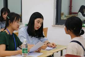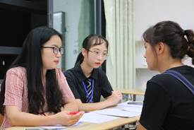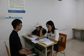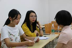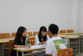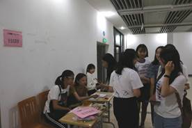 在面试会场,各个部门及协会负责面试的干部都十分认真负责,面试工作紧张而有序的进行,各个环节有条不紊的展开。