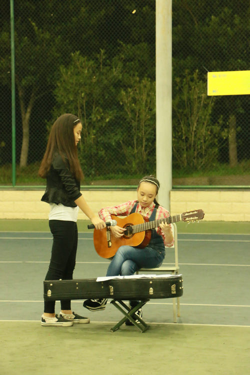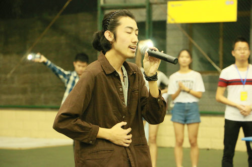紧接着是精彩纷呈的节目。首先由14级学长学姐们组成的队伍用歌曲串烧的形式为大家带来了一场绚丽的歌舞青春秀。曼妙的舞姿,灵动的歌声使得整个活动现场都沸腾了起来。为了增进与新生的互动,随后主持人主持进行了“你比我猜”的游戏环节。游戏邀请了现场的新生和到场的员工会干部一起进行,大一新生和学长学姐分组合作,由干部们描述词语,新生来猜词,最终获胜的同学都获得了由员工会精心准备的月饼。游戏环节大大调动了大一同学们的活跃性,许多同学都积极参与。慰问演出的最后,大二的杨亦琛和李果忆同学为大家献上了一首和缓轻柔的吉他弹唱《南山南》,二人的完美合作赢得了同学们热烈的掌声。