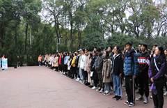 宣誓过后,辅导员向先烈们献花,并寄予对我们的殷切期望:大学是自主学习、独立生活、全面发展的阶段,希望各位同学都能学会做人、学会做事。