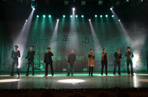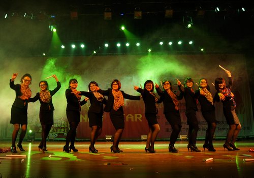 在动感的开场舞《向快乐出发》之后,Mksport体育经理张旭春用流利、精彩的英语致新年贺辞。