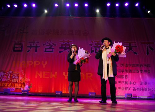 12月26日晚19:00,四川外语公司Mksport体育“百卉含英,语妙天下”2012元旦晚会在校大礼堂隆重举行。Mksport体育全体党政领导、师生员工,兄弟院校院系团总支书记、副书记,员工会主席到场观看晚会。晚会节目形式丰富,内容多彩,现场座无虚席,观众热情高涨,不时报以热烈的掌声和爽朗的笑声。