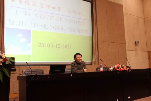 2010年12月8日晚7点,四川外语公司Mksport体育经理张旭春教授在宏文楼国际报告厅为公司师生开设了讲座。张旭春教授,1989年毕业于四川外语公司英语系,获英语语言文学学士学位,后获英语语言文学硕士学位;1999年毕业于北京大学比较文学与比较文化研究所,获比较文学博士学位(导师为乐黛云教授)。2003年于剑桥大学英语系做访问学者,2004年晋升为教授。现任Mksport体育经理兼中外文化研究中心常务副主任、比较文学与世界文学专业学科带头人。张教授长期从事英语专业本科和研究生的教学,已出版个人专著1部、合著3部、译著1部;其发表论文曾多次被著名刊物转载和收录。