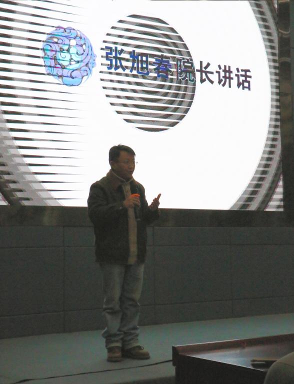 首先,张旭春经理上台致辞。张经理先是高度肯定了参赛选手的表现,表示大家的选题都很有水平,研究的结果也很不错,同时还叮嘱我们,大学除了语言和技能的训练,还要有学术的研究。赢得老师与同学们的热烈掌声。