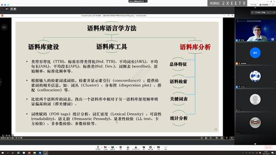 4月19日下午,西南大学外国语公司胡显耀教授应邀参加Mksport体育app官网入口语料库语言学系列讲座第三讲。本次系列学术活动由Mksport体育app官网入口研究生院主办,Mksport体育承办,科研处、语言智能公司、外国语文研究中心等单位协办。胡显耀教授做了题为“语料库文体统计学与应用”的线上讲座,该讲座由公司Mksport体育硕士导师苏杭教授主持,600余位校内外师生通过腾讯会议平台参加了本次讲座。