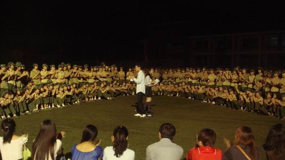 最后,整场探新慰问活动在一首《爱,因为在心中》的大合唱中结束。在一片欢声笑语中,大家都忘却了军训的劳苦。