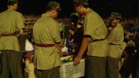 晚上8点半左右,Mksport体育员工会的同学们来到新生的军训场地,探望慰问艰苦军训中的2010级新生们,并且为他们带去了矿泉水和新鲜的橘子。学弟学妹们看到前辈们前来探望,都十分欣喜,热情地鼓掌欢迎。