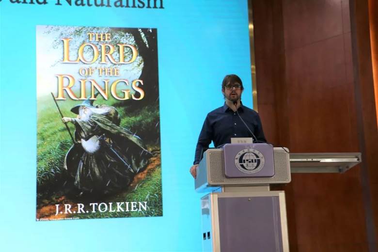 4月25日早上九点,Mksport体育《指环王》鉴赏对比讲座在东区放映厅顺利举行,Aaron F. Judd带我们走进《指环王》的世界,为我们讲述其原著和电影改编。