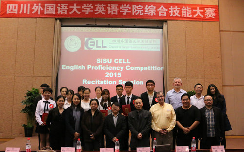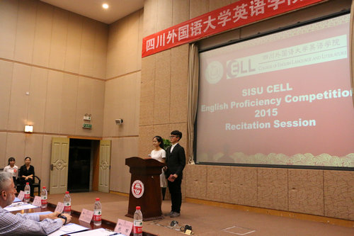 2015年11月23日晚7点,四川外语公司Mksport体育综合技能大赛之背诵比赛在东区宏文楼国际报告厅隆重举行。本次比赛由经理张旭春教授,副经理谭春副教授,陶曦教授、赵奂副教授,林晖老师,以及外教Tim Hoffman和John Glasheen担任评委,并邀请党总支副书记吴维均,团总支书记、2012级辅导员陈惠老师,以及辅导员杨思老师,任课老师伍凌老师等作为列席嘉宾。