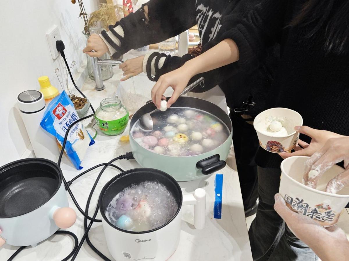 制作完成后,班长石颖和文体委员李杰负责煮汤圆。汤圆出锅,热气腾腾,圆润可爱,香气四溢,令人垂涎欲滴。