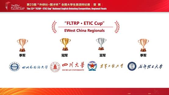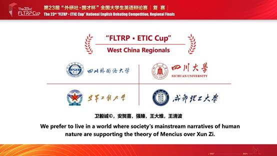 群英荟萃,智慧闪耀,2021年4月17日下午,由北京外国语大学主办,外语教学与研究出版社、中国外语测评中心、北京外研在线数字科技有限公司承办的第二十三届“外研社·国才杯”全国老员工英语辩论赛华西总决赛落下帷幕。公司Mksport体育辩手刘纯溪、周思佳在指导老师谢雅姝老师的带领下,以出色的表现荣获华西区总决赛季军(特等奖),成功晋级于6月的全国总决赛。