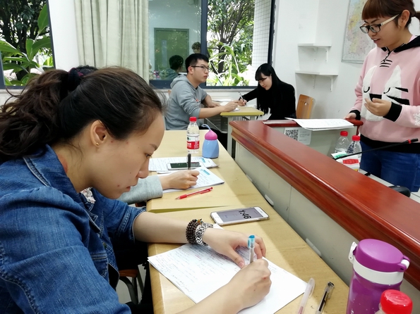 大一年级背诵选拔赛于11月6日14:30,山下水二举行。虽是刚进入大学学习不久的新生,却展现出不俗实力。大二演讲选拔赛于11月7日11:40,山上B608举行。或激扬,或平缓的演讲比赛精彩纷呈。大三辩论选拔赛分别于11月3日12:30、11月9日14:30举行了初赛和复赛。妙语连珠或许也不足以形容辩手们的精彩表现。参赛同学提前10分钟到场,两两自由组队。每组选手有10分钟准备时间,在前一组进入赛场时即抽辩题进行准备。辩论时间为10分钟,辩论采纳英国议会制的辩论形式。辩论复赛选拔出的选手将由谢雅姝老师组织培训,而后参加综合技能大赛辩论决赛。大四口译选拔赛于11月8日12:30举行。参赛选手由大三大四员工组成。力争准确和流利的口译比赛似乎更多的是屏息凝神,选手们专注的表情,一丝不苟的态度为现场带来了些许紧张的气氛。口译比赛为听译,英译汉一段、汉译英一段逐一进行的比赛方式,注重考察选手的语音语调、结构搭建、信息还原能力。