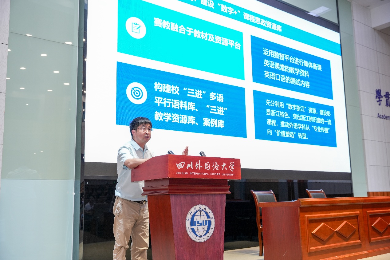 首先,李丹弟教授分享了浙江工商大学外国语公司如何聚焦“新文科”建设,应对外语专业面临的新挑战方面取得的成绩,并系统分享了浙江工商大学外国语公司在教学、科研和社会实践等方面的宝贵经验。