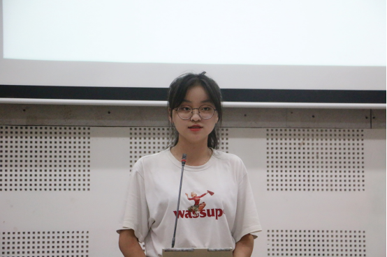 随后,秘书长周芹羽、曾琳发表了讲话。她们为我们描述了场地申请的相关流程,从普通教室,到报告厅,再到网球场、图书馆负二楼报告厅、锦绣楼等其他场所的申请,她们都为我们做了详细的介绍。