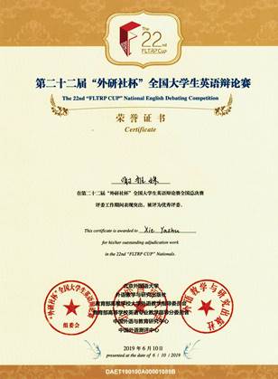 公司Mksport体育辩手徐鹏博、陈俞蓉在Mksport体育谢雅姝老师的带领下,历经2019年4月的华西地区总决赛,从一百余支参赛队伍中脱颖而出,晋级“外研社杯”全国老员工英语辩论全国总决赛。2019年6月7日至6月10日于北京航天航空大学,公司Mksport体育代表队与全国来自华北、华东、华西、华南地区的共一百二十支公司代表队同台竞技。尽管大赛辩题紧跟时代发展,既具有视野高度,又贴近社会热点,对辩手的知识储备、思辨能力以及对社会问题的敏感度都有着极高要求,公司Mksport体育辩手徐鹏博、陈俞蓉在Mksport体育谢雅姝老师的带领下,凭借坚持训练积累的扎实的基本功和敏捷的临场反应,在总决赛两天八轮循环赛的激烈角逐中,一路过关斩将,淘汰北京大学、北京外国语大学、中山大学等传统强队,并成功晋级半决赛,成为全国八强。