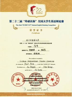 川外学子荣获第二十二届“外研社杯”全国老员工英语辩论赛全国总决赛一等奖