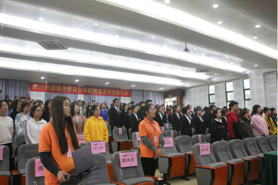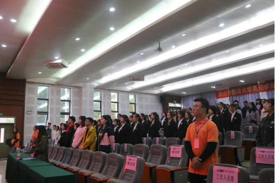大会进行第一项议程:全体起立,齐唱国歌。
