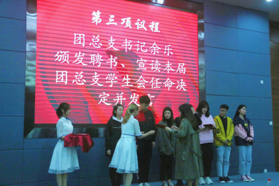 然后,由团总支书记余乐老师宣读本届团总支员工会任命决定。继往开来,承前启后,余乐老师对上一届员工会主席团和干部们的辛勤付出表达了感谢,也对本届员工会的新成员们表示了欢迎,并提出了以下要求: