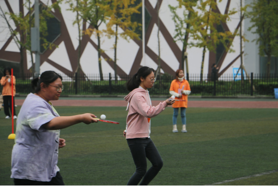第三个项目为托球跑,参赛选手手持乒乓球拍,将乒乓球置于拍子正面,跑步时保证乒乓球不掉落,总用时最少的班级获胜。既要有速度,又要把握好平衡感,这对选手们来说是一个不小的挑战。