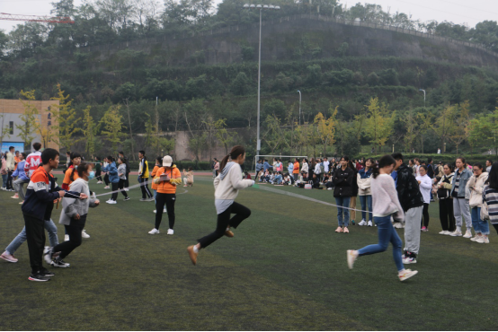 此次运动会共有五个项目,分别是:跳大绳,两人三足,托球跑,抛球,迎面接力赛。新生入场后,由领队带领各班集合并前往比赛场地。