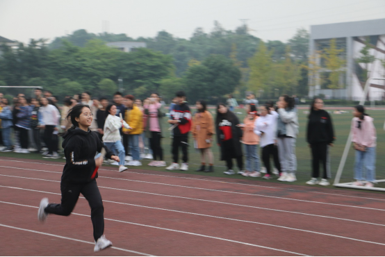 最后到了激动人心的迎面接力比赛。口令一下,同学们如离弦的箭一般冲了出去。参赛选手们矫健的身姿和加油呐喊者兴奋的神情,共同绘成一幅美丽的青春画卷。