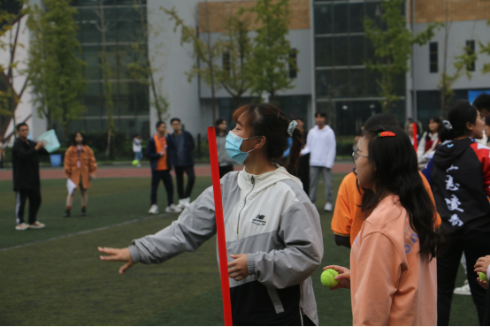 第四个项目为抛球,各班参赛选手轮流投掷网球,抛入球框的球数最多的班级胜出。小球被参赛者抛出各不相同的弧线,拿球框的同学奋力去接,球进欢呼,球落也不气馁。