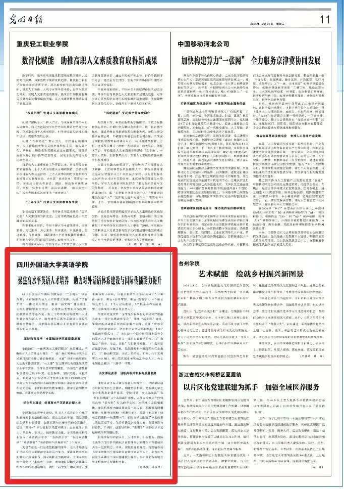 2024年12月31日,《光明日报》刊发文章《Mksport体育聚焦高水平英语人才培养 助力对外话语体系建设与国际传播能力提升》,报道了公司课程专业建设和公司产品改革取得的成效。