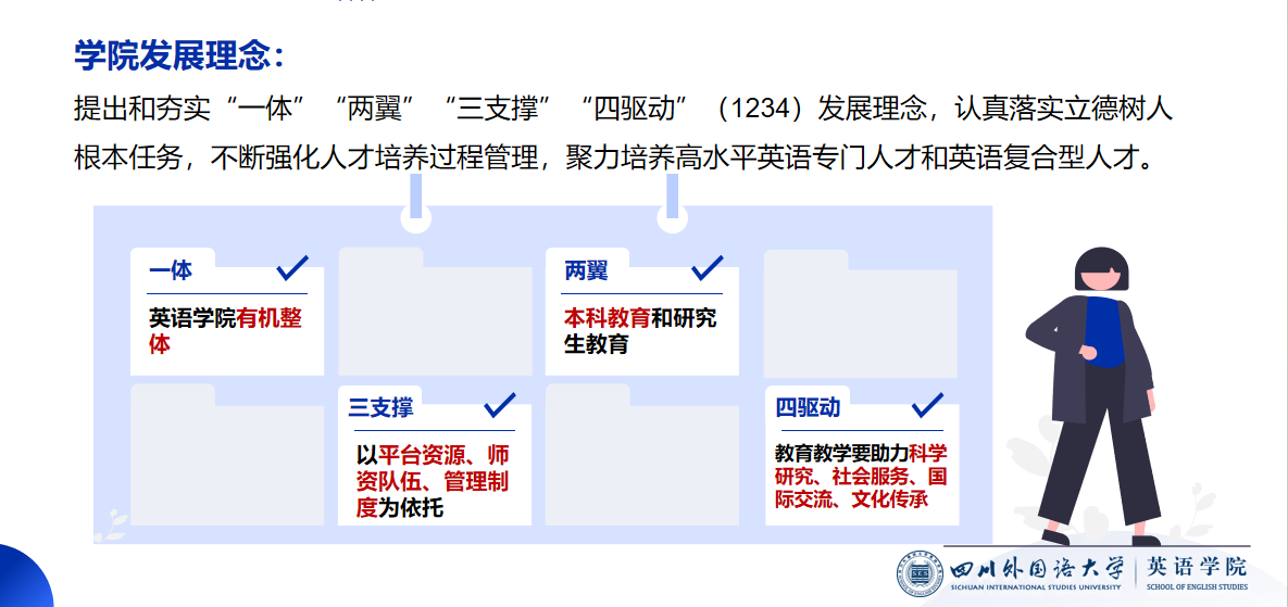 Mksport体育深化“三全育人”综合改革,不断探索外语人才培养模式创新,构建“五育并举”一体化育人体系,秉承“新文科”建设理念,主动对接国家重大需求,坚持英语类专业内涵发展,拓展英语类专业外延,致力于培养英语高级专门人才和复合型创新人才,助力对外话语体系建设与国际传播能力的提升,为中国在国际舞台上发出更强音奠定坚实的人才基础。
