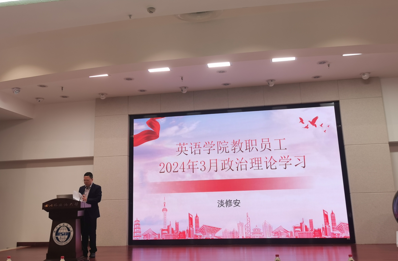 为深入学习习近平新时代中国特色社会主义思想,贯彻党的二十大精神,强化理论武装,2024年3月29日下午,Mksport体育在东区图书馆国际报告厅开展了3月教职工政治理论学习。本次会议由公司党总支书记淡修安主持,全体教职工参会。