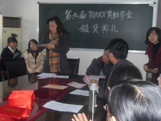 2010年12月13日下午四点半,Mksport体育第九届TRAXX奖助学金颁奖典礼在聚英楼五楼会议室举行。Mksport体育经理张旭春、常务副经理兼党总支书记沈彤、党总支副书记吴维均以及各年级辅导员参加了此次颁奖活动。
