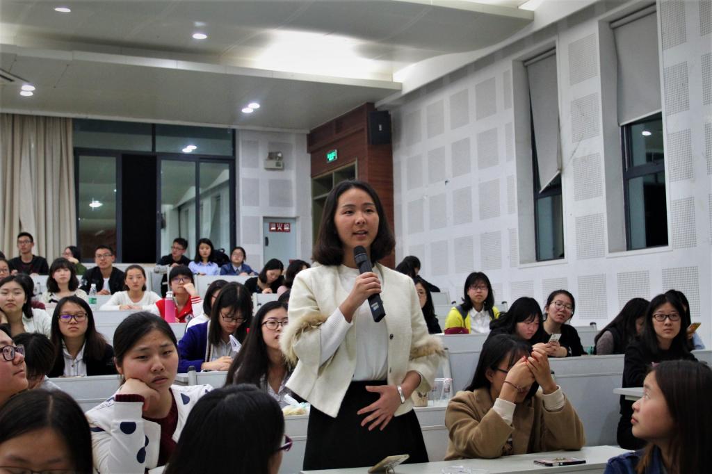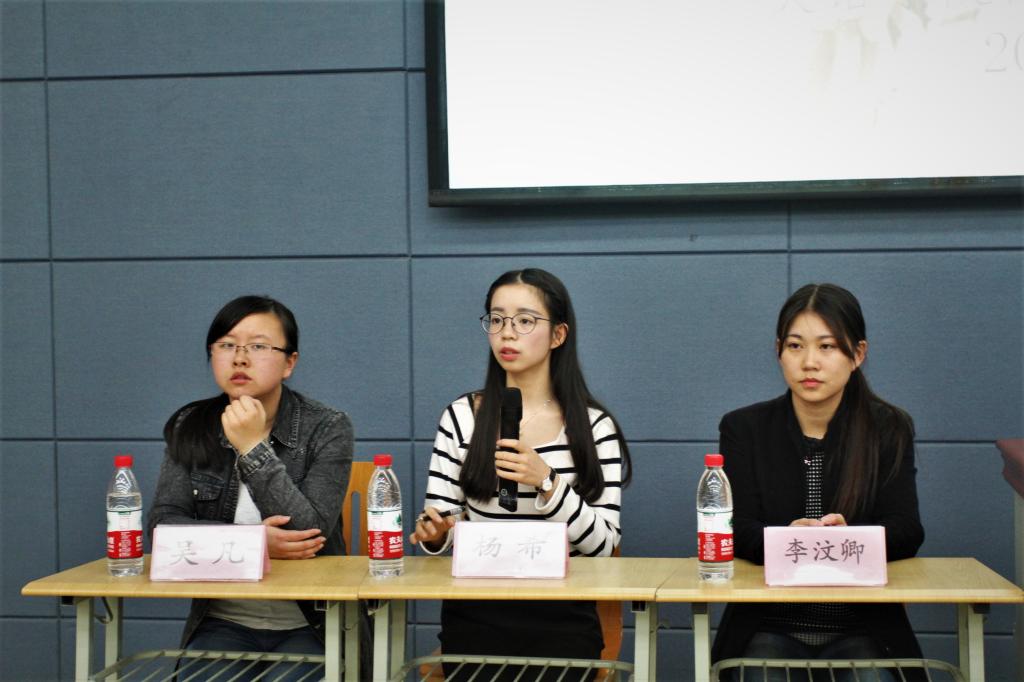 讲座的最后,同学们向三位学姐热情的咨询相关问题。李汶卿、杨希、吴凡三位优秀的学姐耐心回答了同学们提出的关于考研前期准备的各种问题,表达了对准备考研的同学的鼓励。