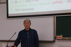 首先,常亮副教授从英语标题、大学英语名称和自己名字的书写格式讲起,引导同学们关注日常生活中英语的正确写作格式。他以QQ一词为例,讲述单词词义的变化规律,并以大量的例子阐明词汇的搭配意义、语法意义和构词的变化。在此基础上,他建议同学们多阅读报纸新闻,获取大量的新鲜词汇,与时俱进。