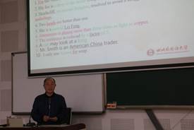 最后,常亮副教授讲述了单词在长句中的翻译,并教授了长句翻译的技巧:加词转句调序。由于时间有限,他只挑选了课件中部分例子来讲,但同学们都反映说受益匪浅。
