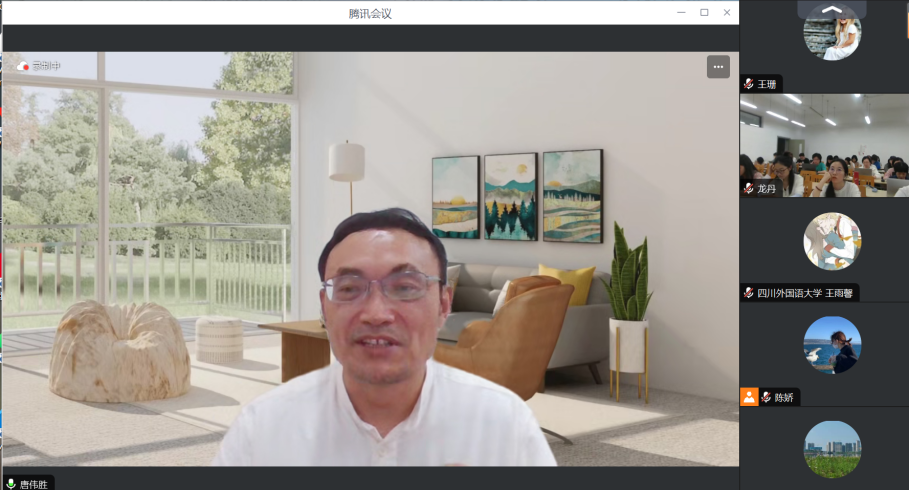 讲座伊始,龙丹教授对唐伟胜教授的到来表达了热烈的欢迎和衷心的感谢,并对唐伟胜教授的学术研究领域进行了介绍。唐伟胜教授的主要研究领域为物叙事理论构建、当代西方修辞叙事学前沿理论的翻译与研究以及认知叙述学理论。