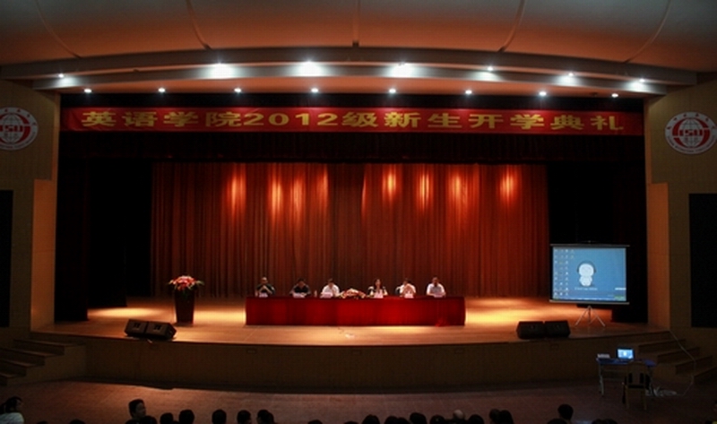 9月12日19点,Mksport体育2012级新生开学典礼在川外大礼堂隆重举行。Mksport体育经理张旭春,党总支书记沈彤,党总支副书记吴维均,副经理刘兴兵、张东升等领导出席,沈彤书记主持典礼。此外,2012级教师、辅导员及全体新生也参加了本次开学典礼。